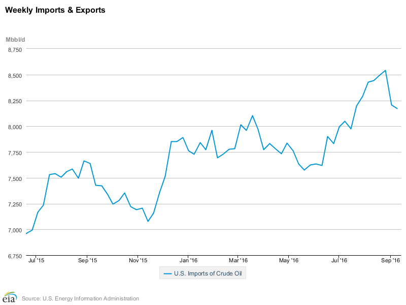 … et par conséquent des importations en augmentation d’un million de barils par jour en un an.
